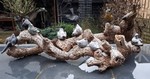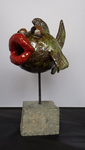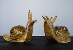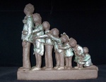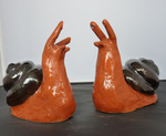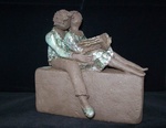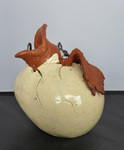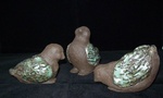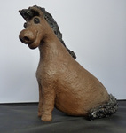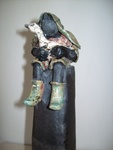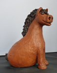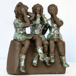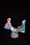 De geglazuurde beelden zijn tussen de eerste en de tweede stook met glazuurverf behandeld.